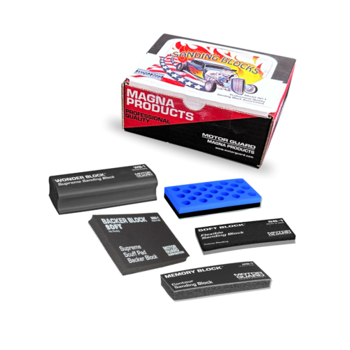 Mini Sanding Blocks – These miniature sanding blocks are designed for fine detail sanding in tight spaces. Constructed of a specialty formulated compound, their ergonomic shapes allow for fine, fingertip sanding on a wide variety of provides and body lines. Each bar measures 3-1/2 inches in length.