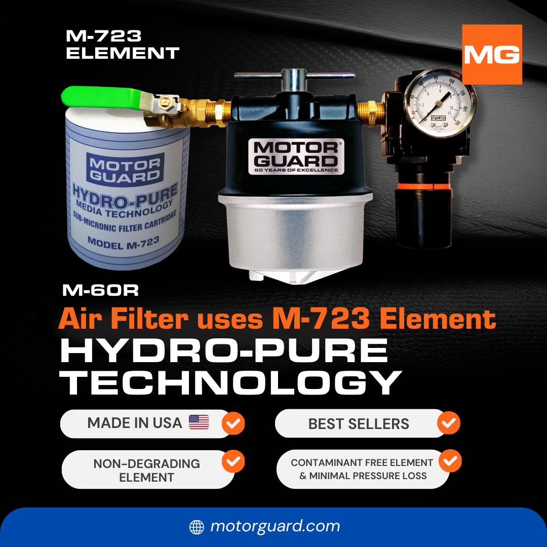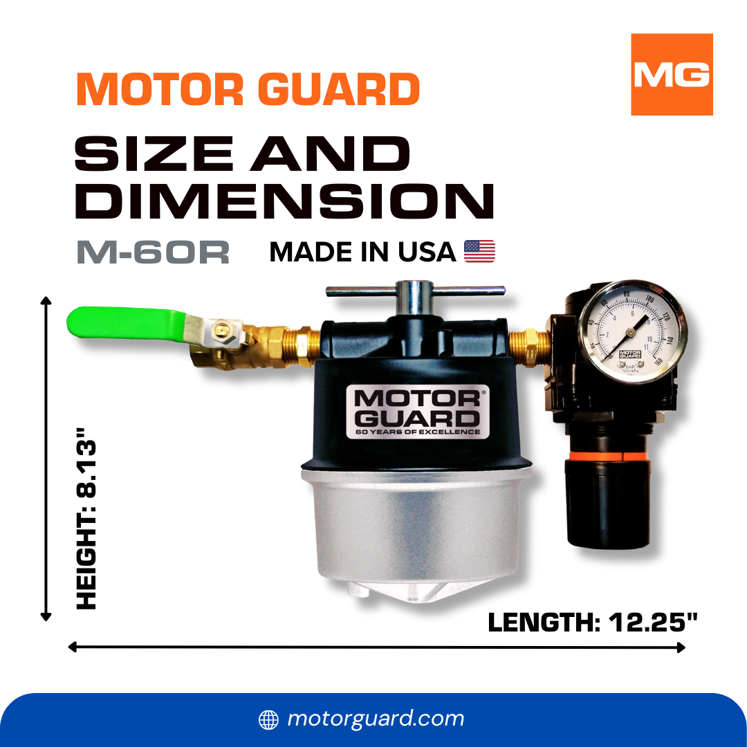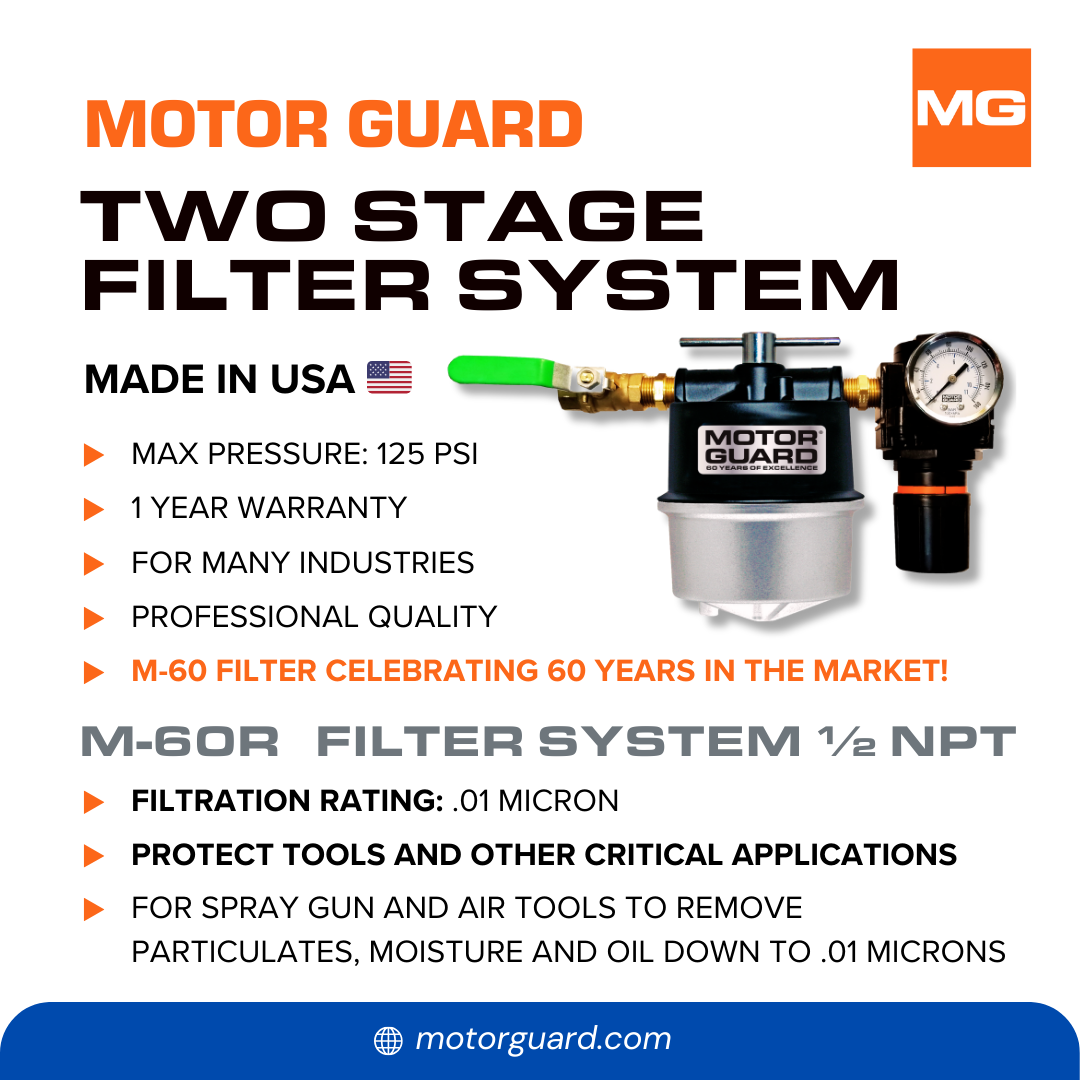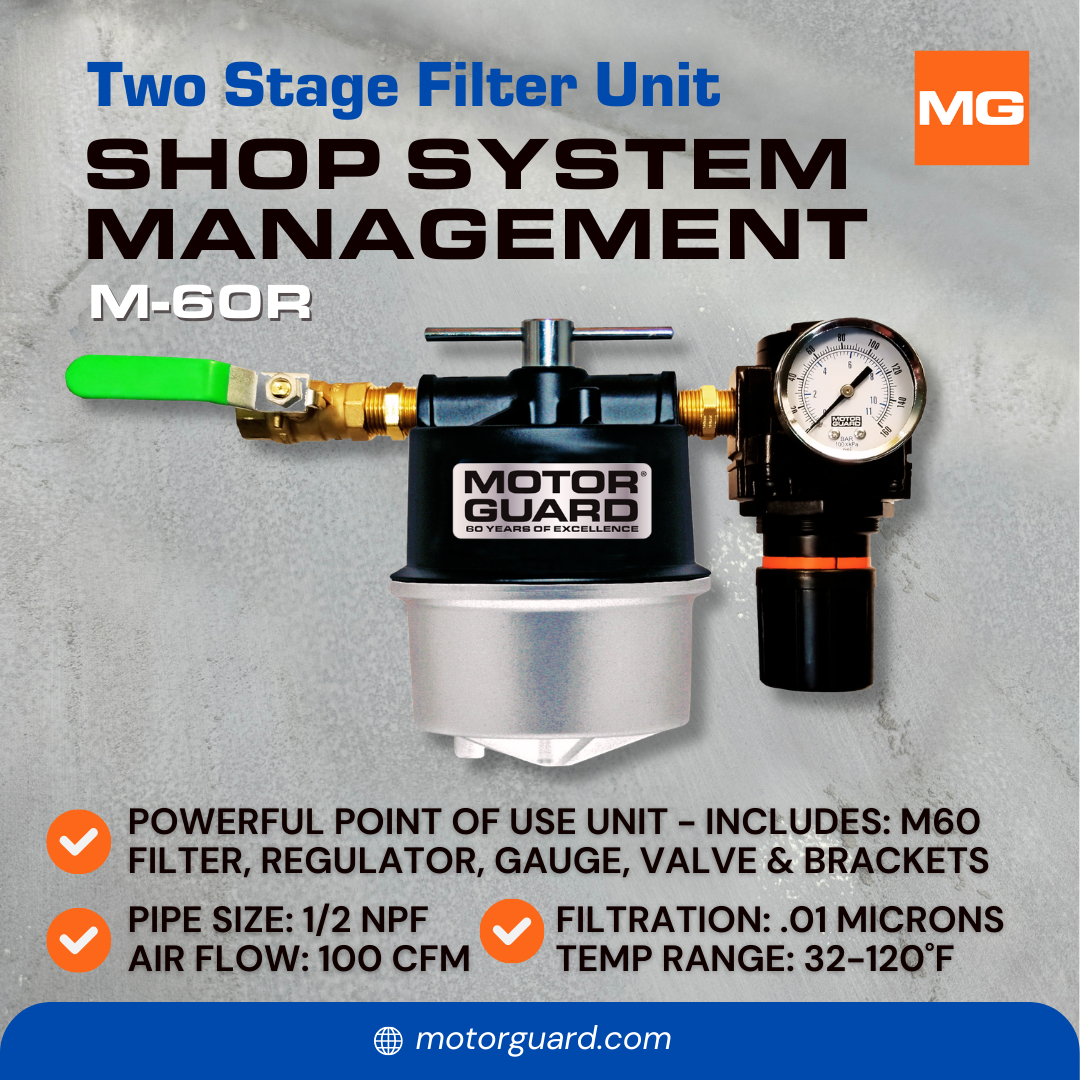 The Motor Guard M-60R combines a sub-micronic compressed air filter with a precision true-diaphragm regulator and gauge for a powerful point-of-use air preparation unit.