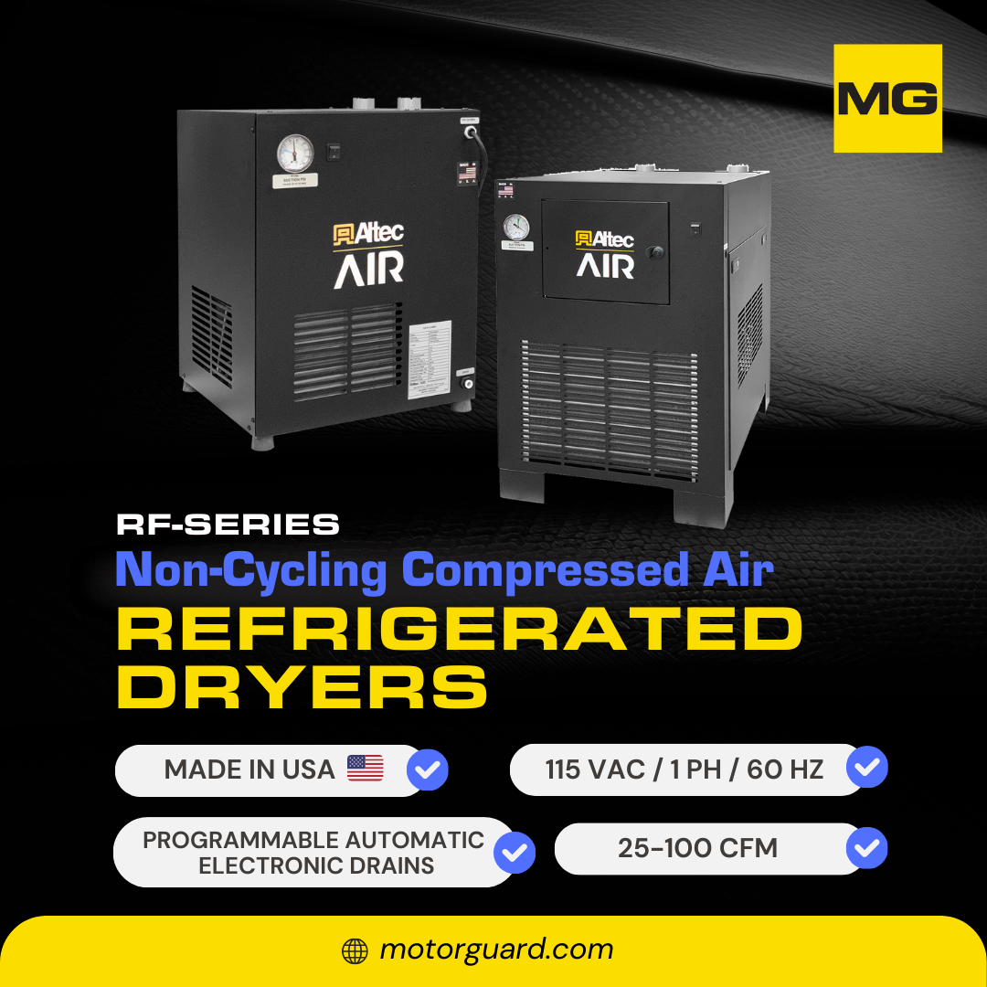 Motor Guard distributed Altec AIR Non-Cycling Refrigerated Air Dryers, are designed to meet the demand of your compressed air system with quality components that are built to last.
